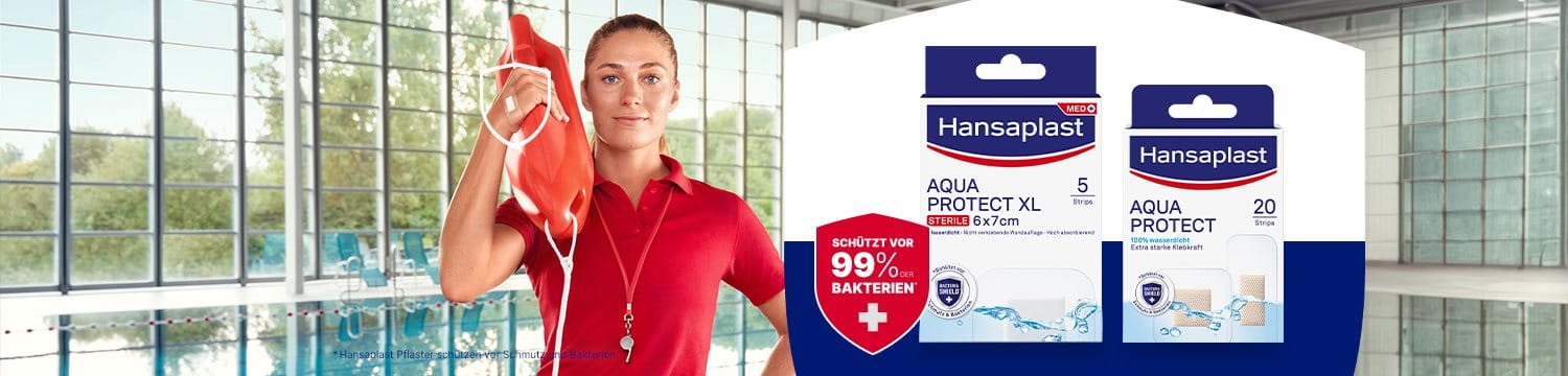 Nach einer Verletzung ist es wichtig, schnell wieder in den gewohnten Alltag zu kommen. Dazu gehört auch Schwimmen, Duschen oder Baden. Mit unseren wasserdichten Aqua Protect Pflastern und Wundverbänden in XL/XXL/3XL/4XL ist das selbst bei postoperativen Wunden kein Problem. Die nicht verklebende Wundauflage sowie die extra starke Klebekraft schützen selbst im Wasser vor Schmutz und Bakterien – während sie die Haut gleichzeitig atmen lassen.