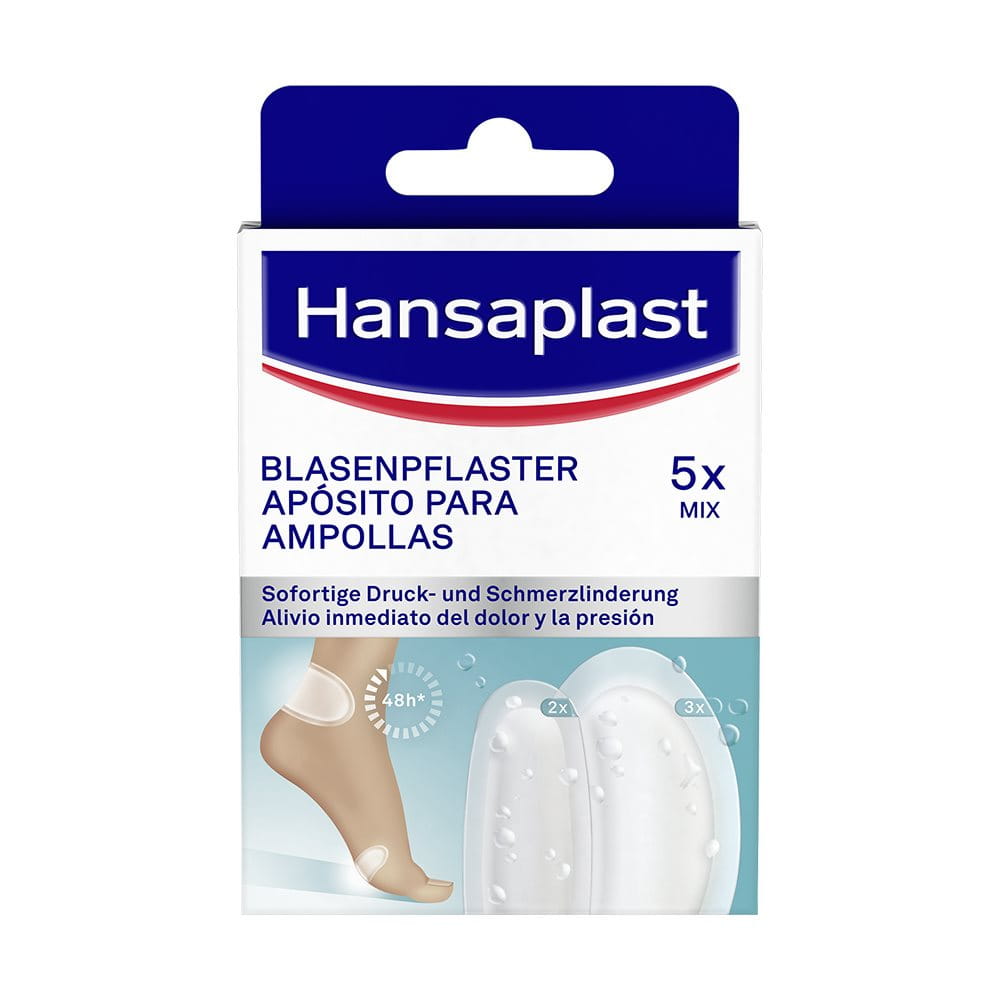 Das Hansaplast Blasen-Pflaster mit der Hydrokolloid-Technologie lindert den Druckschmerz sofort und schafft optimale Bedingungen für die Wundheilung, da es die Umgebung feucht hält und die Wundheilung beschleunigt. Während des Heilungsprozesses ist die Blase sicher vor Schmutz und Bakterien geschützt.