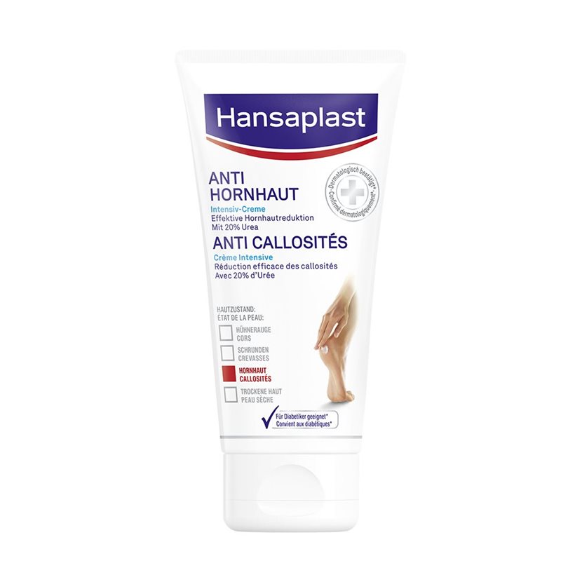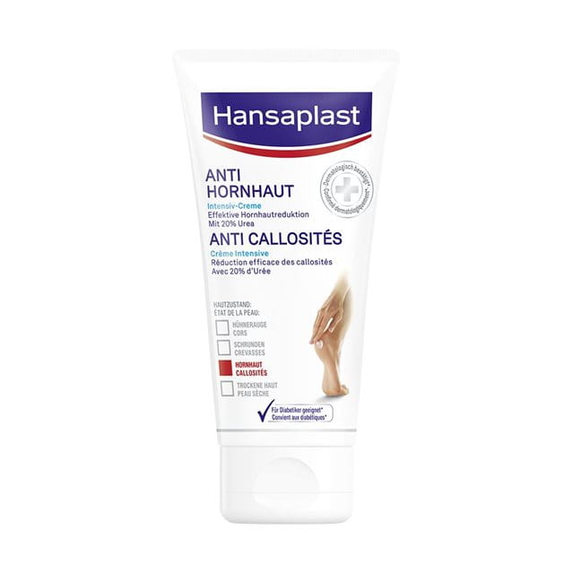 Fußcremes mit Urea, wie zum Beispiel Hansaplast Anti Hornhaut Intensiv-Creme, helfen, trockene, raue und verhornte Fußhaut zu regenerieren, intensiv mit Feuchtigkeit zu versorgen und sie dadurch wieder sanft und geschmeidig zu machen.